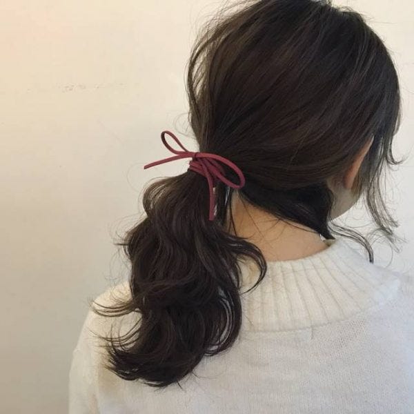 紐を使ったヘアアレンジが人気の今。おしゃれ好きな大人女性も、お気に入りの紐でシンプルなローポニーをもっとおしゃれにアップデートしています。