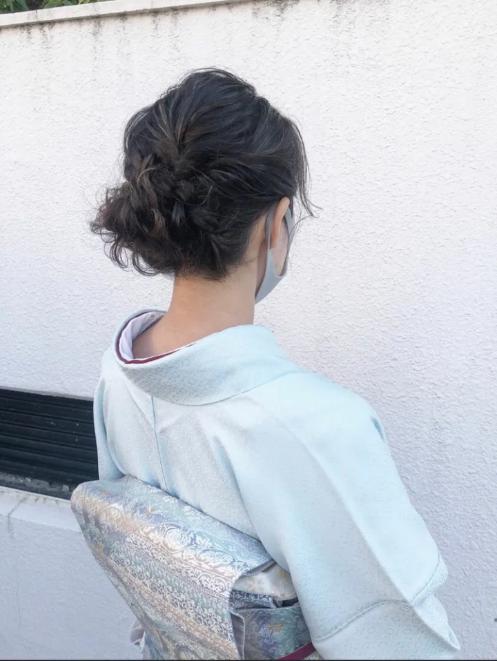 せっかくのお呼ばれの席に着物で参加したいという方も多いのではないでしょうか。こちらのサイド寄せのアレンジならボブからミディアムまでセットが可能です。