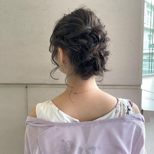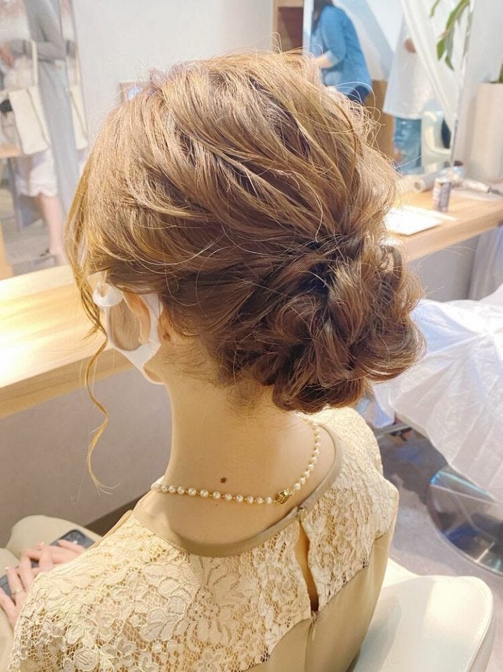 たとえ、ミディアムの長さでもお祝いの席ではダウンスタイルではなくまとめ髪で祝福の気持ちを伝えることが大切ですね。