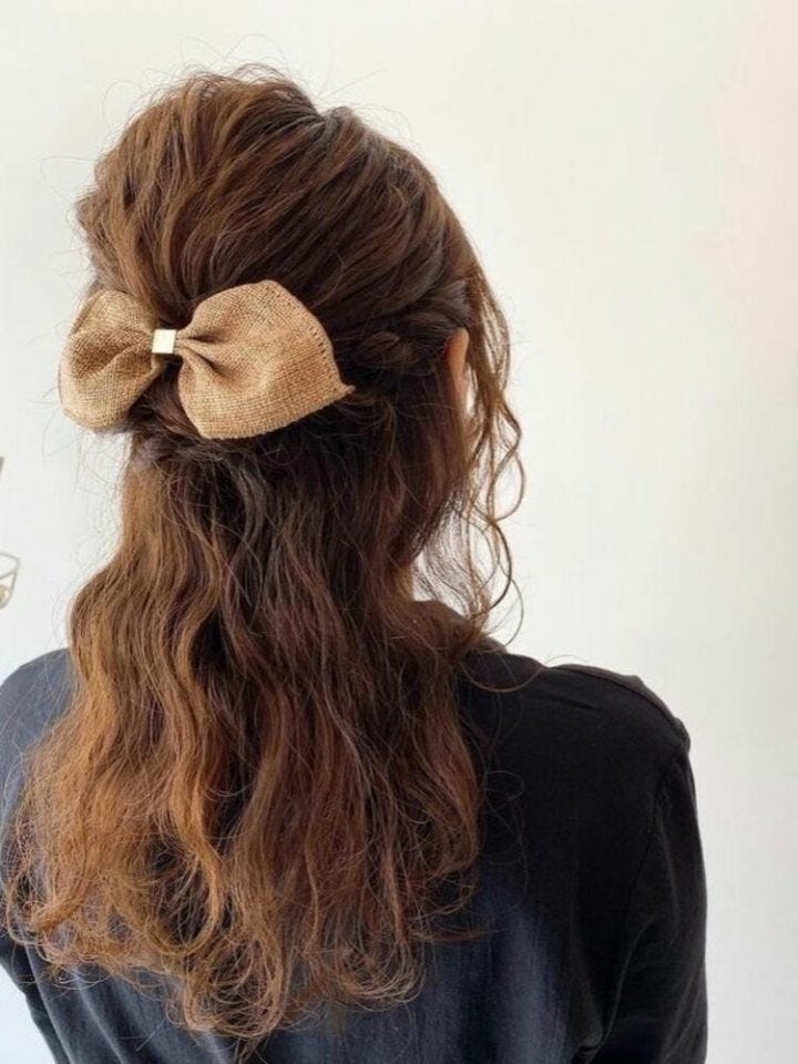 小さめのお団子を作ってサイドからねじってまとめあげただけと簡単だけど、おしゃれなハーフアップ。お団子は、ふんわりとまとめ上げるのがポイントです。