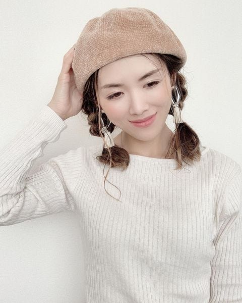 ショートボブやボブでも三つ編みにできるぐらいの長さがあればできるヘアアレンジで、ベレー帽やキャップなどとも相性がいいですよ。