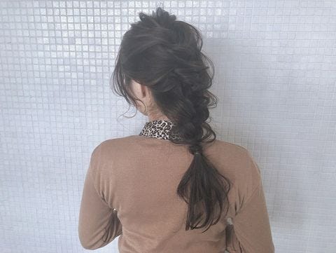 ハチから毛先にかけて髪を片編み、もしくは三つ編みにして残りの髪とまとめてロープ編みをするだけなので簡単にできておすすめですよ。