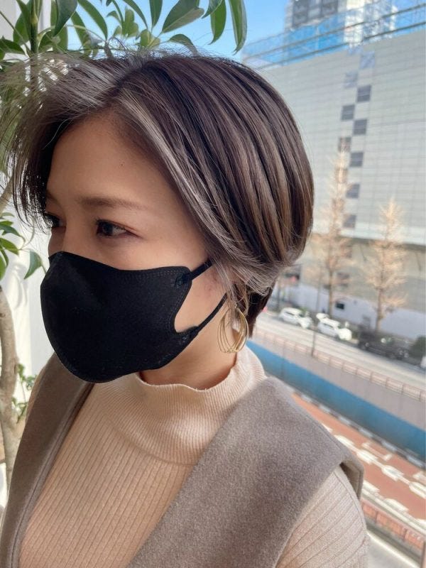 大人の女性でも取り入れやすくするコツはシンプルなショートヘアに合わせること。