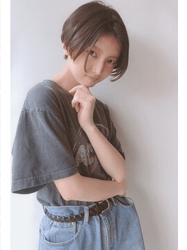 センターパートの前髪なしショートは、色気が出せるうえにクールにも見えるところがポイント!