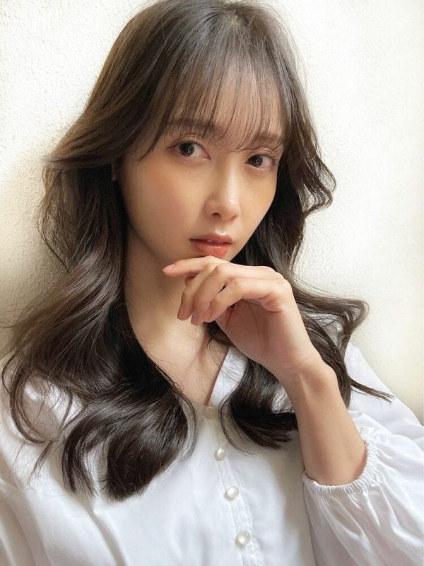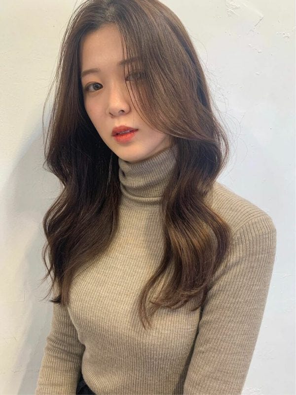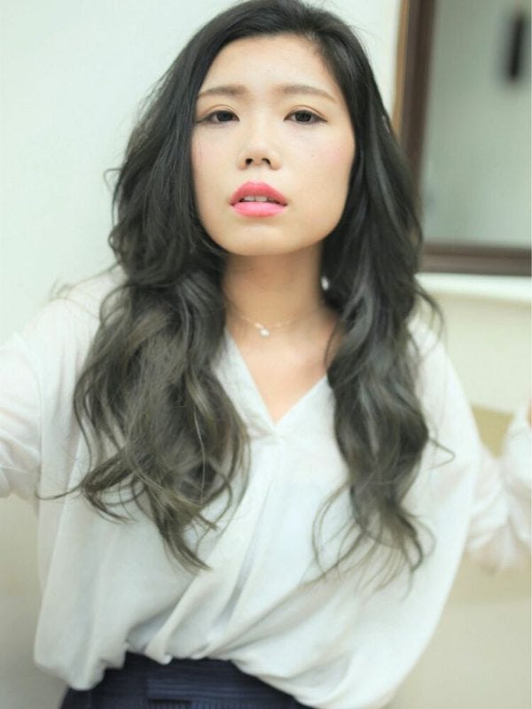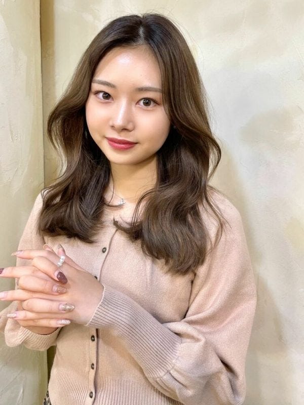 韓国風ロングはふんわりと大きめのウェーブで横にボリュームが出やすいスタイルであり、横幅が強調される髪型のため面長さんにおすすめですよ。