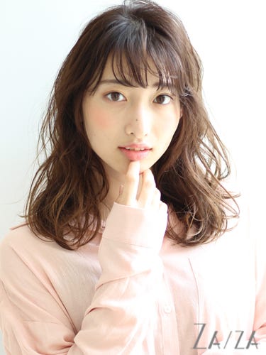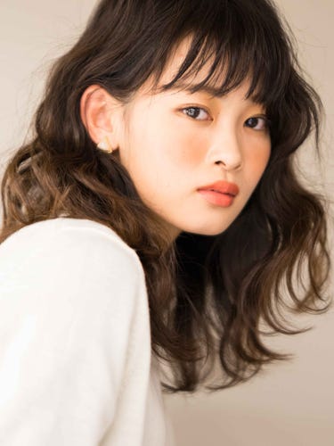 ふんわりとしたシルエットで横幅をボリュームアップしつつ前髪ありの髪型にして、おでこが見える面積を狭くすることで面長さんにも似合う髪型になります。