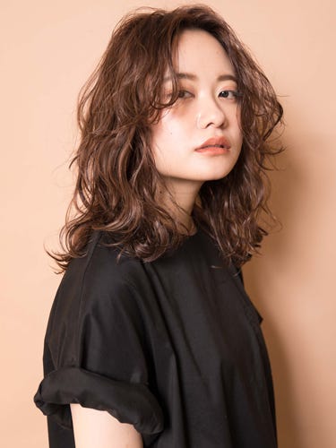 パーマをかけて、ふんわりとやわらかな質感にすることで冷たい印象に見られがちな面長さんも、やさしく女性らしい印象にすることができます。