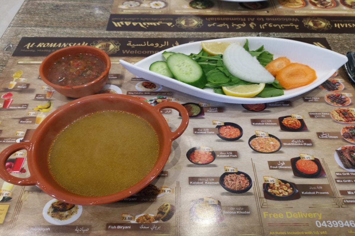 ちなみに、まとめて提供する以外にもこうやって分けてくれるので安心。マドゥフーンもマンディと同じくイエメン発祥の料理で、本来は穴を掘ってそこに炭を入れ、じっくり加熱する。マンディよりもシンプルな味付けが日本人向けだ。