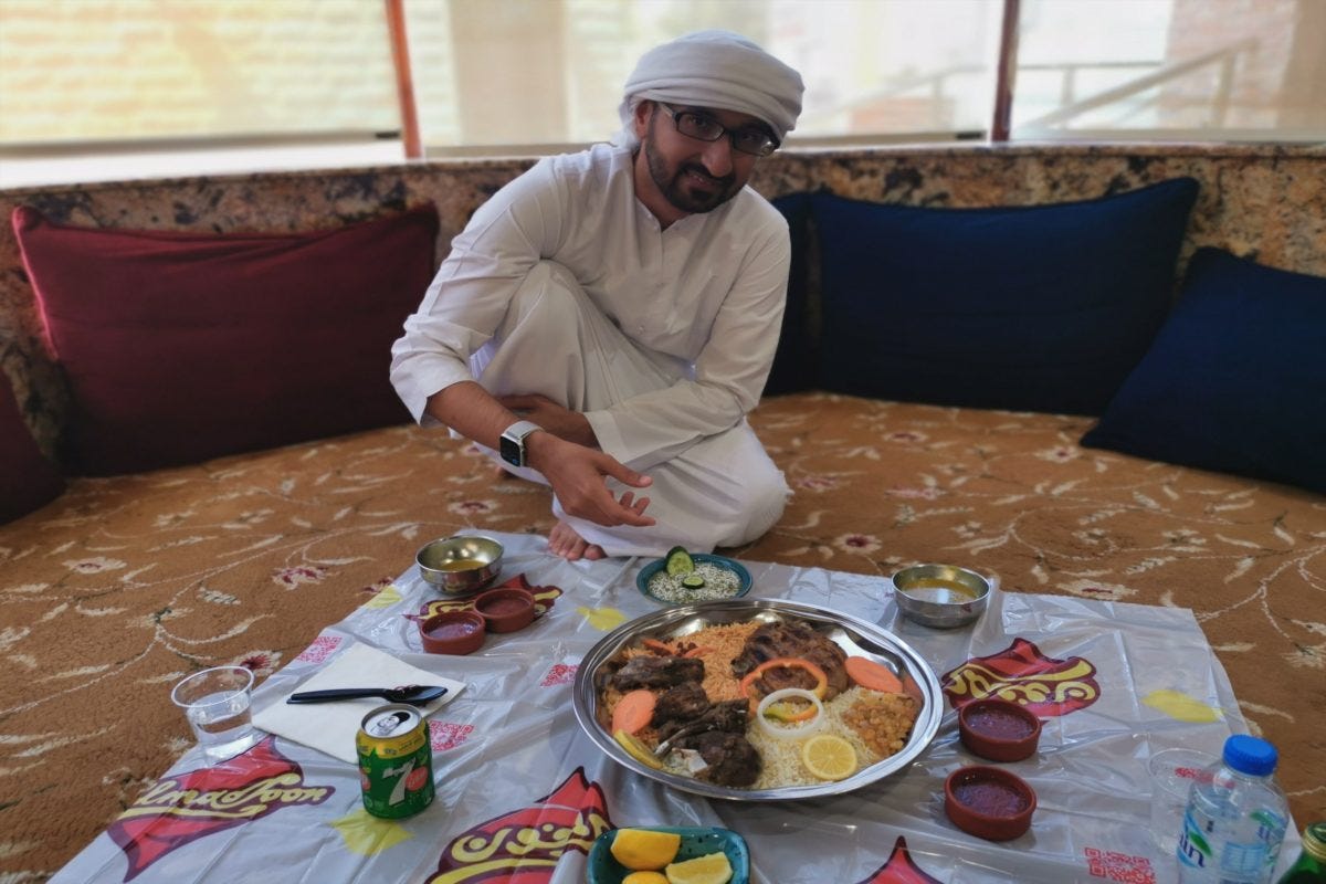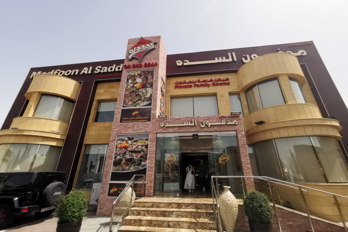中東風炊き込みご飯の店は多くの観光客が集まるドバイにたくさんあるのだが、ドバイ通記者と、UAE人のムサビさんイチオシの店がこちらの「マドゥフーン アル サダ」。