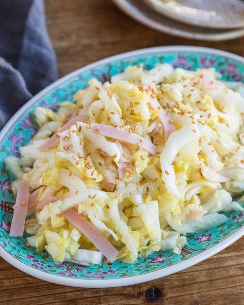 主な食材は白菜とハムだけで、白菜のみずみずしい甘みとハムの塩気が絶妙に合う人気レシピです。
