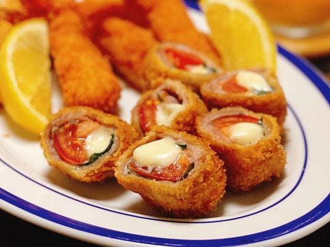 こちらはトマトとモッツァレラチーズで作る肉巻きフライです。
