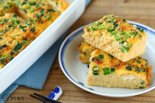 こちらはオーブンで焼く簡単な卵焼き。生地に大根おろしと片栗粉を混ぜて焼くのがコツで、独特のふんわり食感が楽しめる人気レシピです。