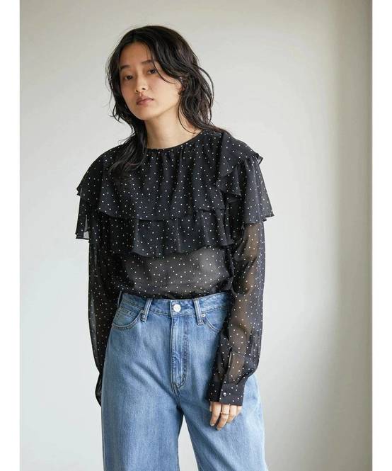 AMERICAN HOLIC(アメリカンホリック)の「シフォン楊柳フリルブラウス」は、春トレンドのドット柄が大人可愛い雰囲気。