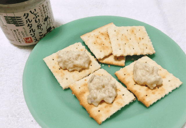 今回は『いぶりがっこのタルタルソース』本来の味を確認するため、シンプルにクラッカーにのせて食べてみました!