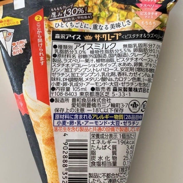 2022年3月8日に森永製菓から「ザ・クレープ ピスタチオ&ラズベリー」が販売開始となりました。