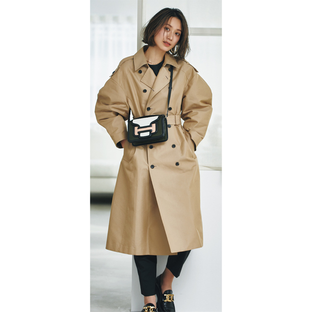 コート¥85,800(ニアー ニッポン/ニアー)トップス¥30,800 パンツ¥31,900(ともにハイク/ボウルズ)ピアス¥39,600(ブランイリス/エストネーション)ネックレス¥44,000(リューク)バッグ¥111,100(ピエール アルディ/ピエール アルディ 東京)ローファー¥94,600(トッズ/トッズ・ジャパン)