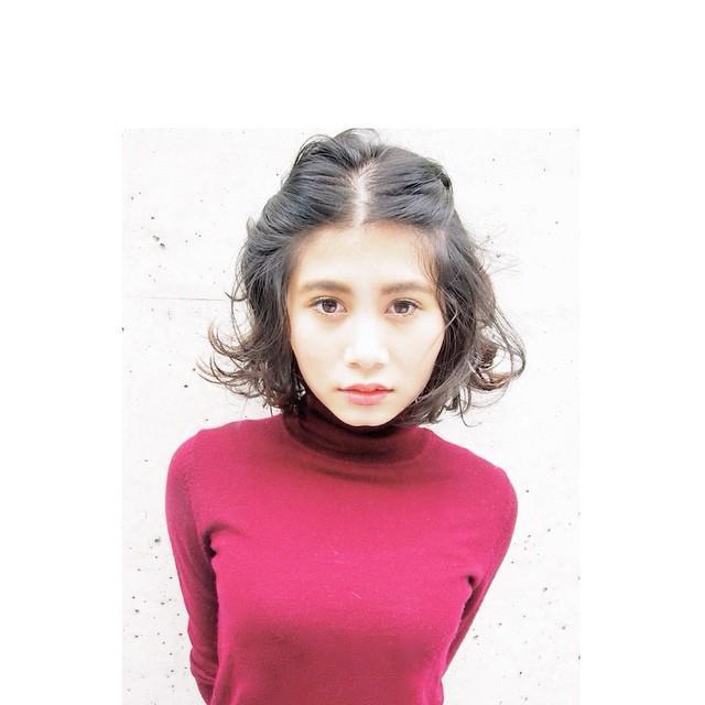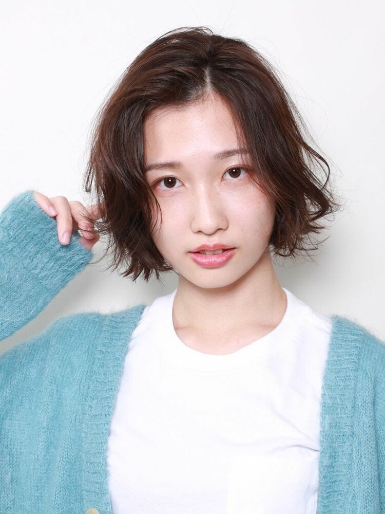 前髪ありのボブで実践すると、より可愛らしい印象で若返りにも効果的です。