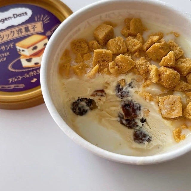 2022年3月15日に各コンビニで「ハーゲンダッツ クラシック洋菓子 レーズンバターサンド」が販売開始となりました。