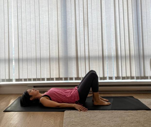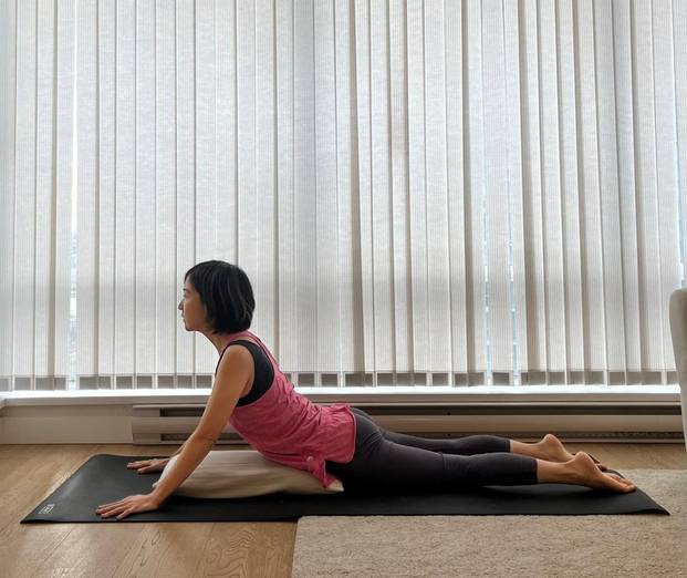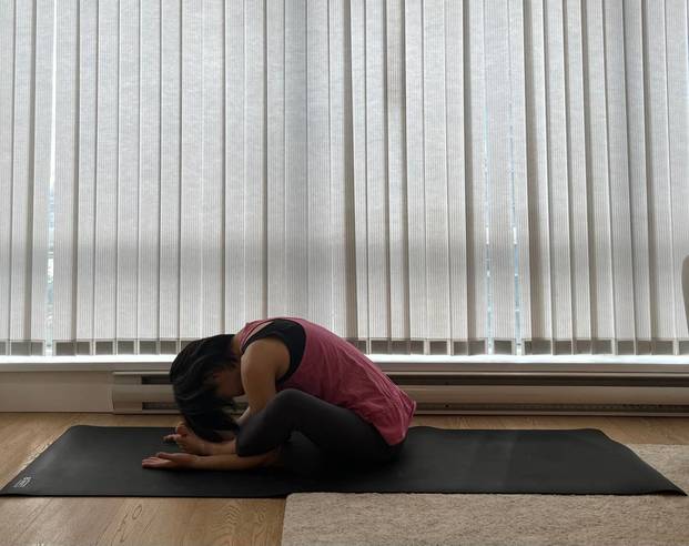 腰回り、股関節、お尻、腿周りが伸びます。腰痛緩和だけでなく、冷え性、生理痛緩和にも効果的な女性に嬉しいポーズです。