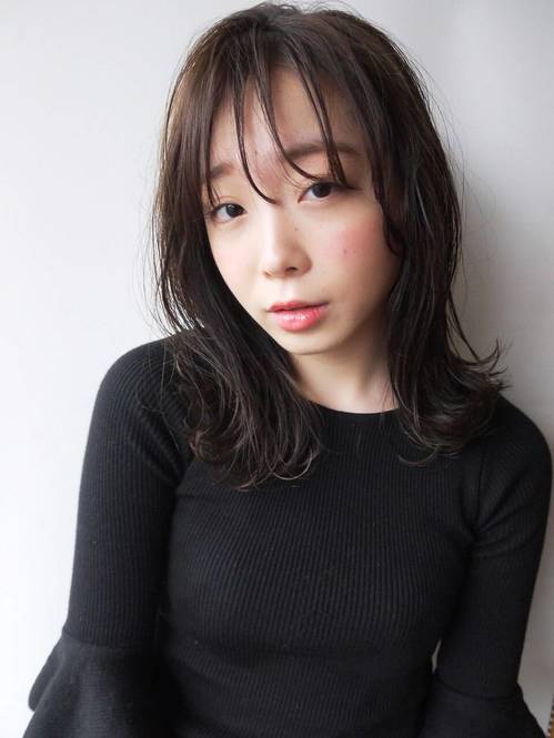 【暗髪×ミディアム系】大人女子におすすめの髪型①抜け感たっぷりのシースルーバングミディ
