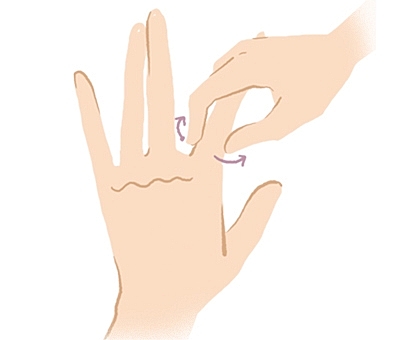 ぐるぐるとツイストしながらスライドします。これも、5本全ての指に対して行います。