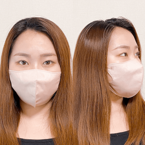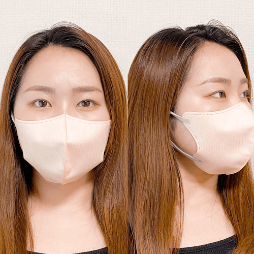 くちばし型のマスクは面長顔でも顎から頬にかけてのラインがすっきりして見える上、フィット感も抜群で感染予防効果の面でも安心感があります。