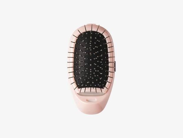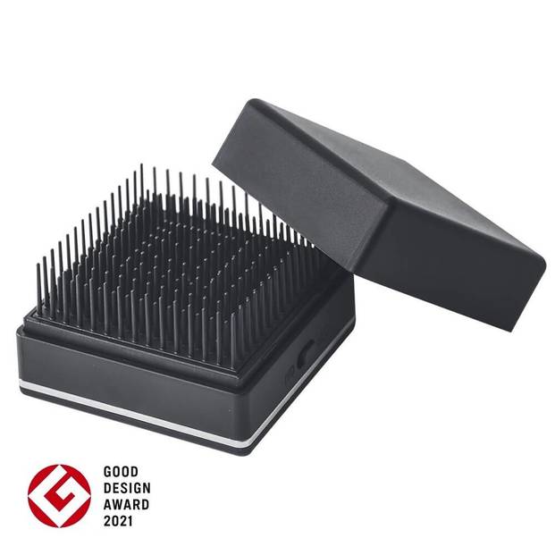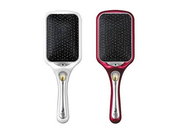 「マイナスイオン リセットブラシ KBE-2400」は、磁気と音波振動の力だけでなくマイナスイオン機能も搭載されたエアークッションタイプのヘアブラシです。