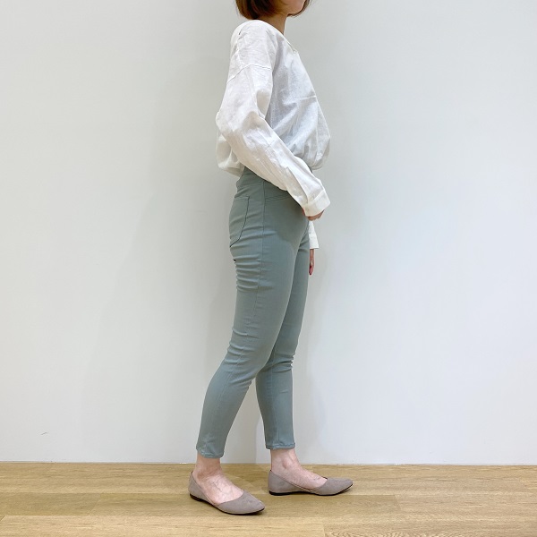 股上が深いハイライズのデザインになっていて、トップスをインしてもきれいに穿けるんですよ。