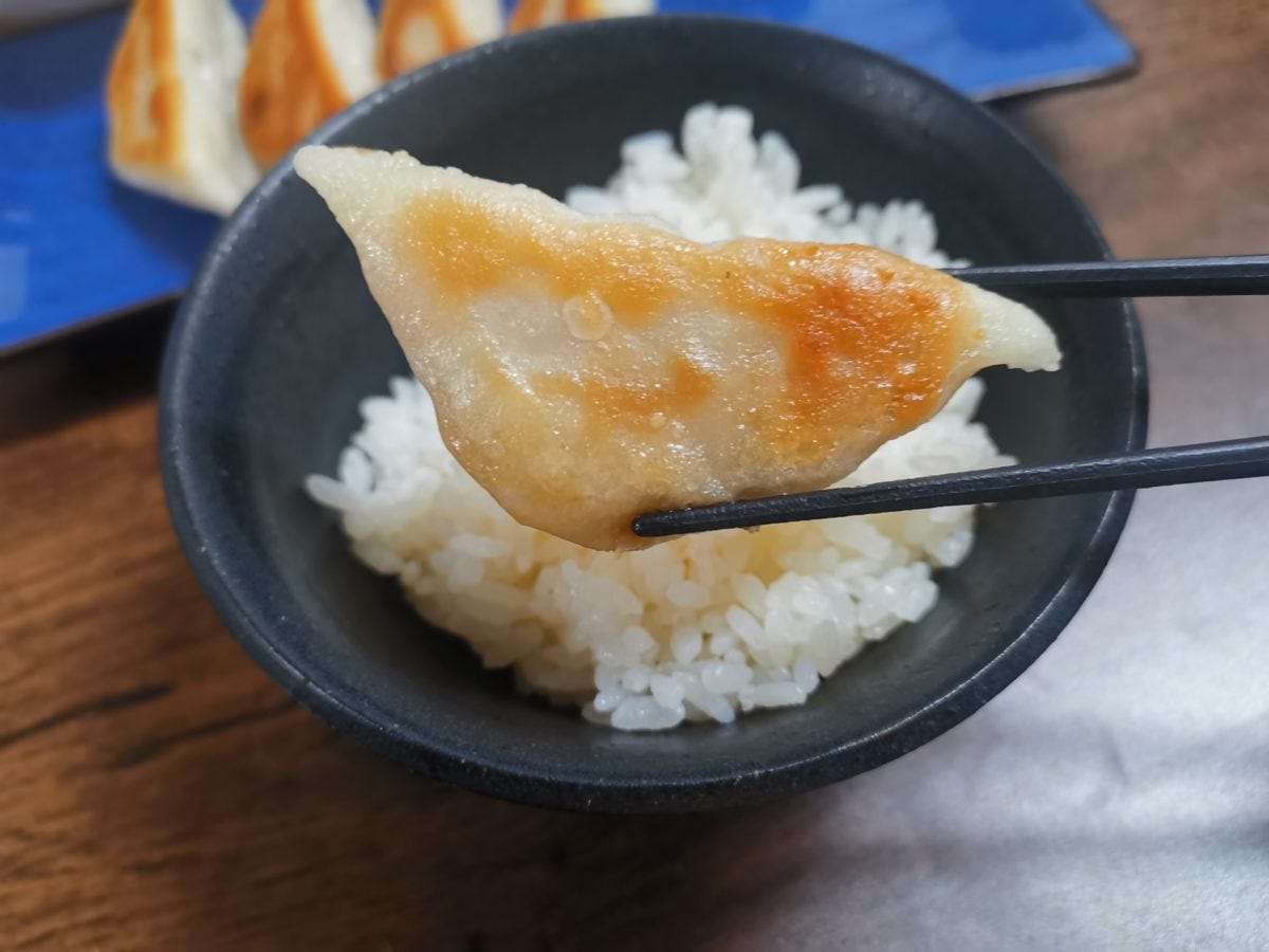 なんと黒兵衛の焼き方は、通常の餃子と同じようにまず蒸し焼きにするのだが、蒸し焼きにしながらフライパンを動かしてまわしながら、音がしなくなるまで焼く必要がある。
