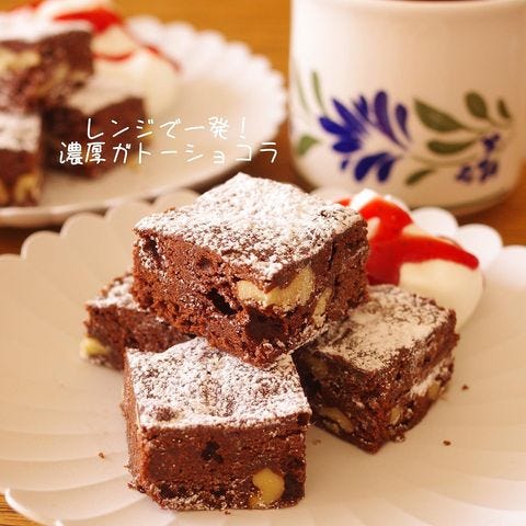 人気のチョコ味のミニケーキです。電子レンジでわずか10分くらいで作れるので、急いで仕上げたいときやオーブンがなくても大丈夫!