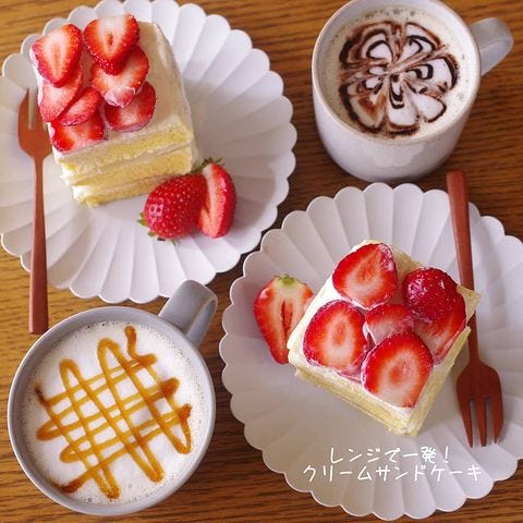 生地は電子レンジで作れて、難しいデコレーションをしなくてもホイップクリームといちごで十分豪華でおしゃれなミニケーキができますよ。