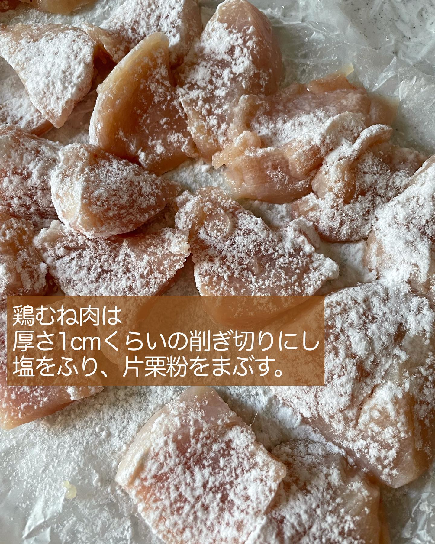 作り方①片栗粉をまぶす