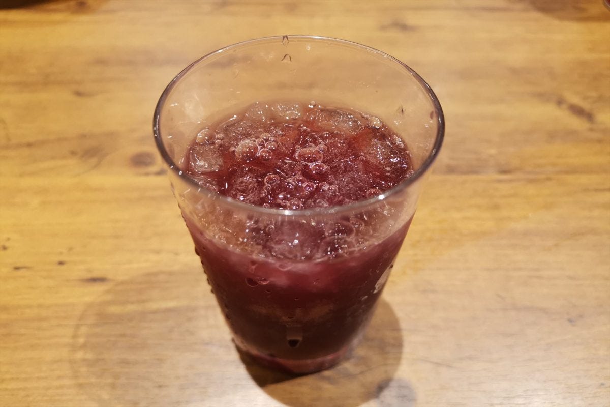 ドリンク自体もかなり美味しく、甘さ少なめでしっかり「ワイン感」を感じられるレベルだ。アップルジュース2:オレンジジュース2:カベルネ(赤ワイン風飲料)6で割ると、ノンアルコールサングリアにもなって激ウマい。