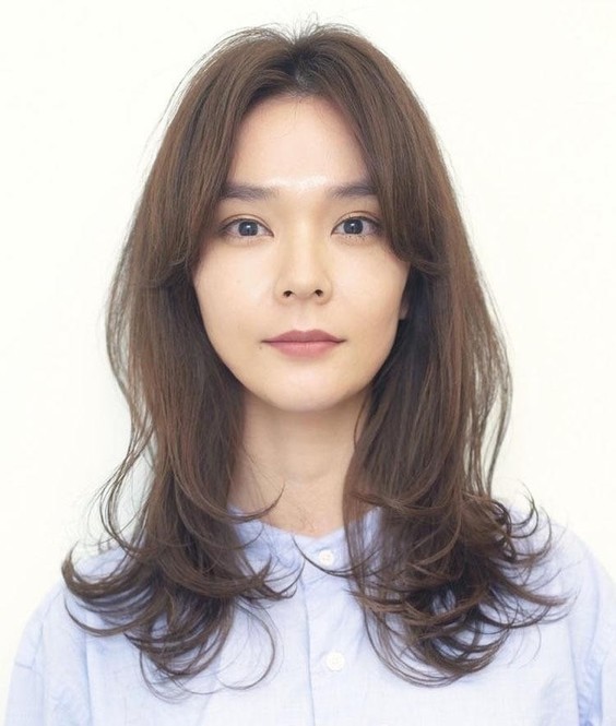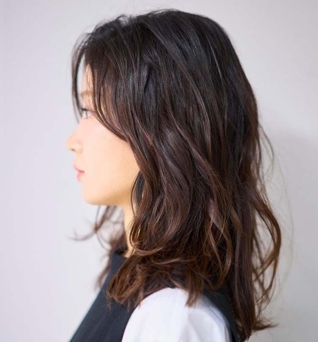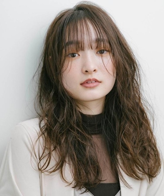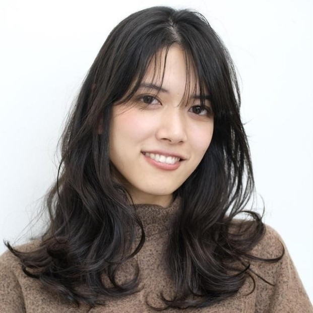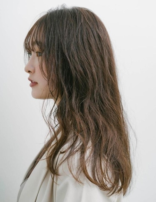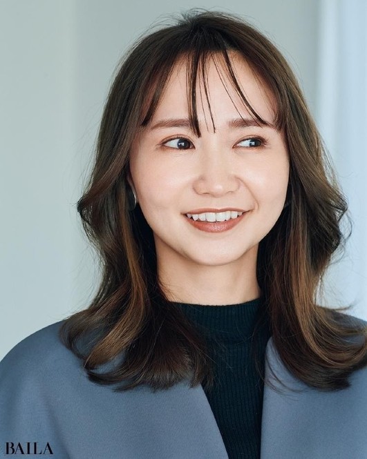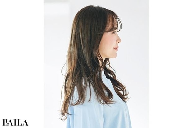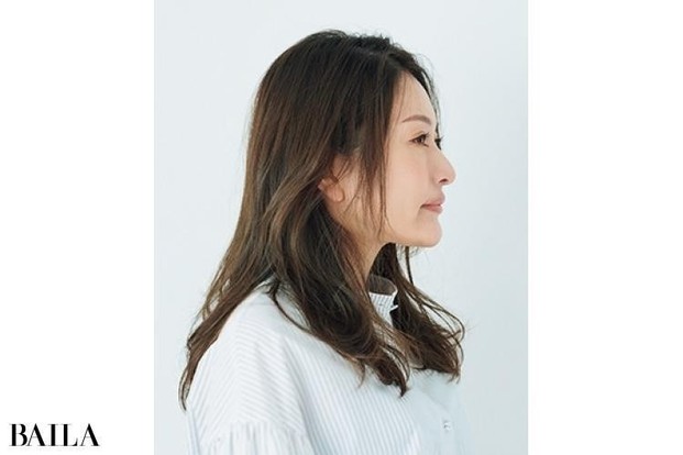 エラ張りさんは6:4の“流し前髪”で立体感をプラスする。横ラインがあること、直線があることでエラ張りさんの顔立ちは強調されがち。そこで6:4に流せる“深め”の長め前髪に設定を。中心がずれることで、フェイスラインから目線をそらす狙いもありつつ、前髪をつくって子どもっぽく見せたくない人にもおすすめ。