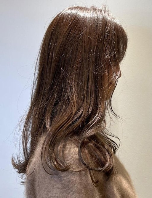 トレンドスタイルと好相性な明るめベージュ系カラー。レングスを問わず重めヘアがトレンド。またマスクをしていてもしていなくてもおしゃれに見える、明るめカラーのオーダーが急増中。中でもナチュラルベージュに人気が集中。会社でも浮かない明るめカラーにするためには、薄いピンクをMIXしベージュの黄みを抑えるのが有効。