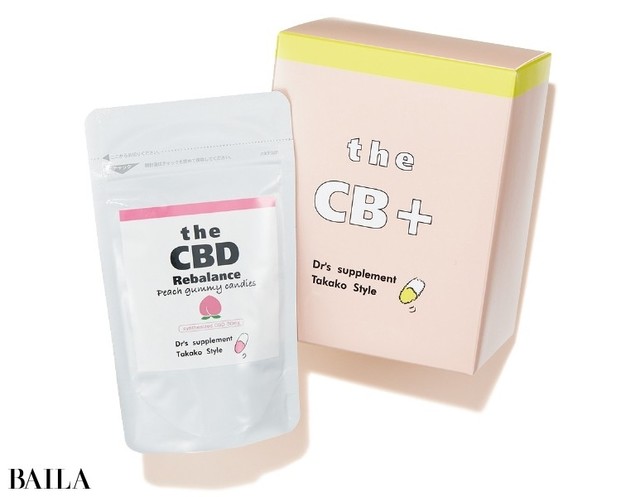 「ストレスが強く頭皮が硬かったり眠りが浅い人は、それらを緩和するインナーケアの併用が効果的。ストレス抵抗力が高まるビタミンC&B、ビタミンBは毛根の活性化も。CBDはストレス改善効果だけでなく、単体で発毛効果にも期待が」(美容皮膚科医 貴子先生)。(左)the CBD rebalance 15粒 ¥ 2750・(右)the CB+ 30包 ¥7020/TAKAKOスタイル