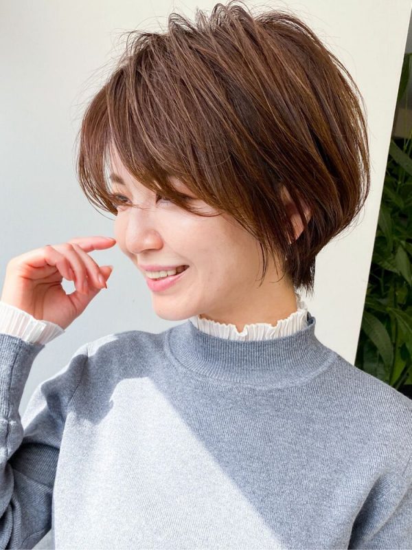 さりげなく少なめにレイヤーを入れているので、女性らしい雰囲気があるショートレイヤーに仕上がっています。