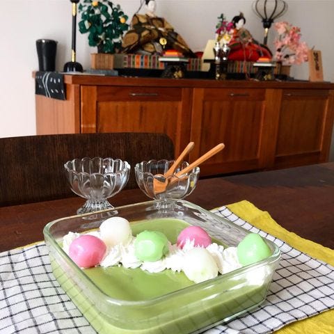 こちらはパンナコッタを抹茶味でアレンジした和風デザートです。