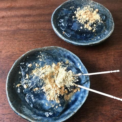 氷水でしっかり冷やして、きな粉や黒蜜をかけていただきます。食後のデザートにぴったりの、軽く食べやすいスイーツです。