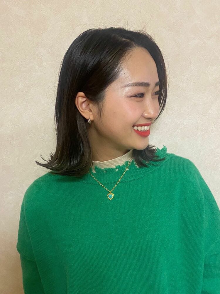 暗めの髪色でも垢抜けて見えるのが、オリーブグレージュの魅力ですよ。