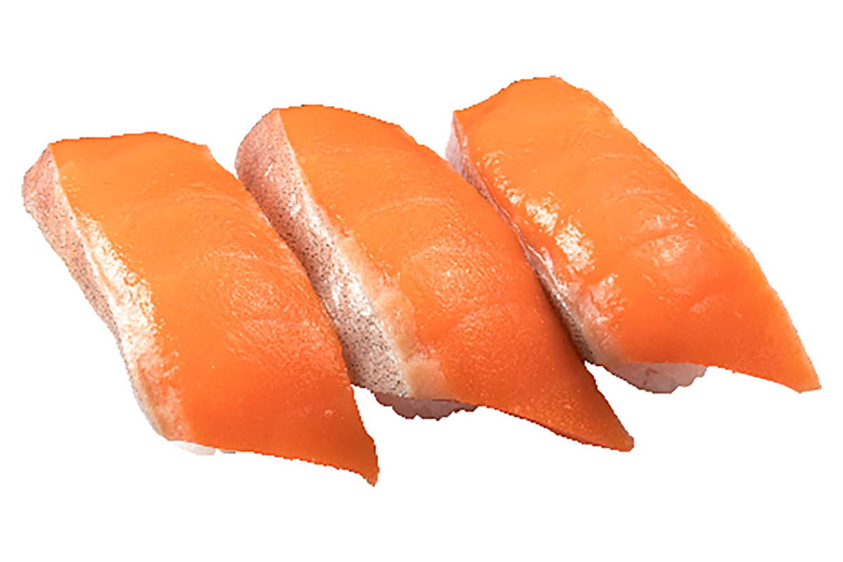 対する『サーモン』は時期に合わせて産地や魚種を選定。その時期に一番美味しいサーモンをバイヤーが厳選しているという。ちなみに、店舗で皮引きし、1枚1枚丁寧に切り付けしており、しっとり滑らかな食感と甘みが楽しめる。なお、かっぱ寿司オリジナル「だし醤油」で召し上がるとより旨みが引き立つのだとか。