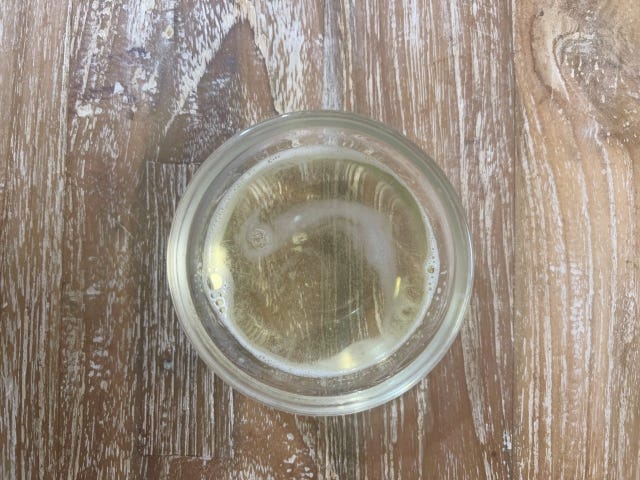 ① 小さめの耐熱ボウルに水を入れてゼラチンパウダーを振り入れてふやかし、600wのレンジで20秒加熱します。