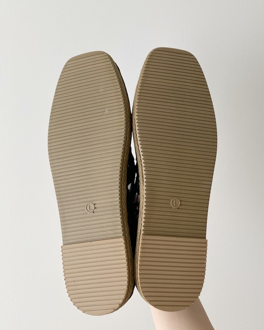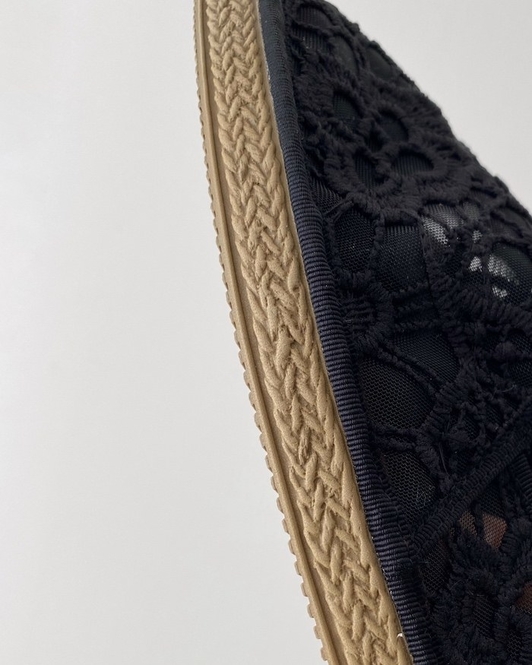 本格的なエスパドリーユはこの部分がジュート編みになっていたりしますが、こちらは模様が彫られてました。