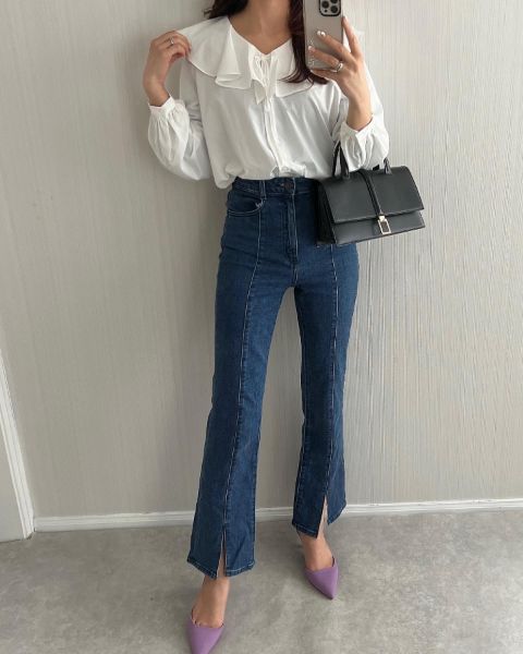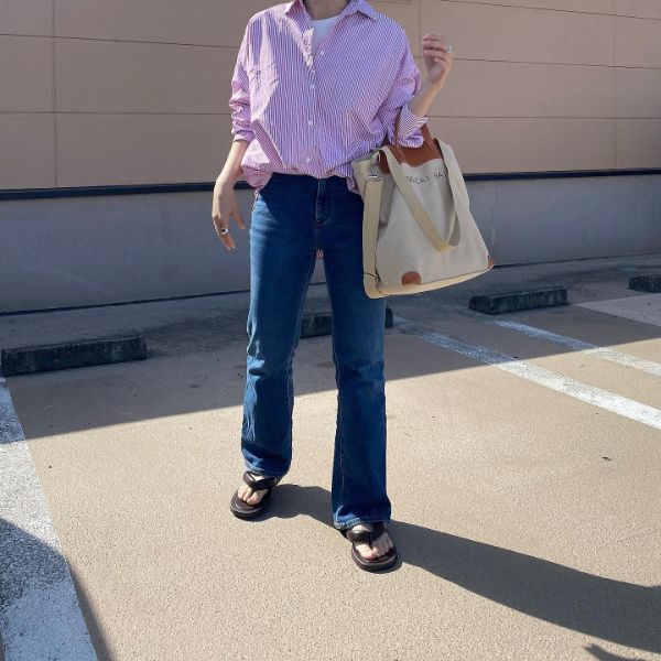 現在販売されている中で、特にスタイルアップが期待できると人気なのが「フレアジーンズ」と「センタープレスセミフレアジーンズ」。