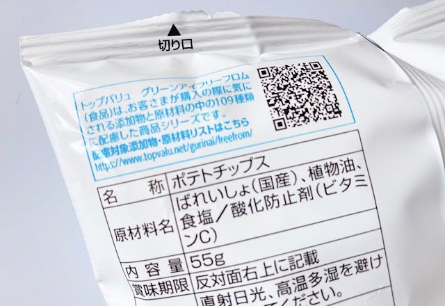 こちらがトップバリュの「塩だけで味付けした 堅めに揚げたポテトチップス」です。
