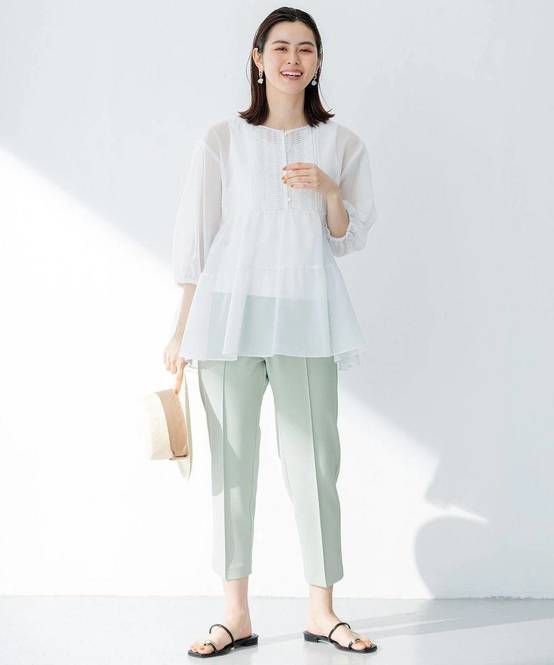 ボトムスを問わない白ブラウスなら着回し力も高め♪