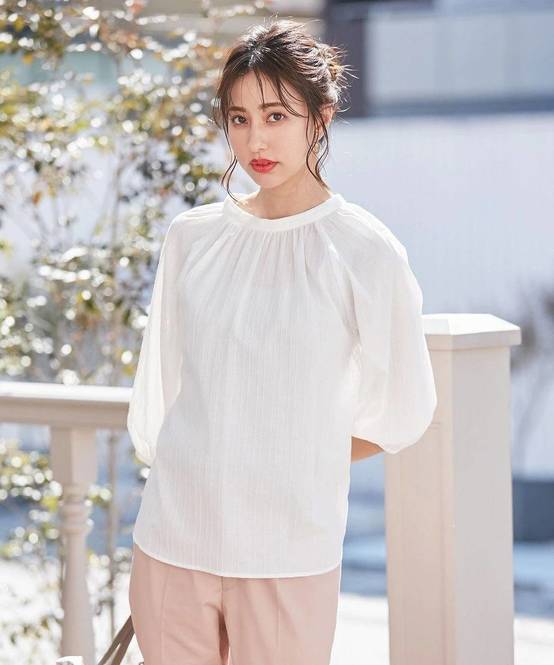 顔まわりがパッと華やかに仕上がる優秀な白ブラウスです。