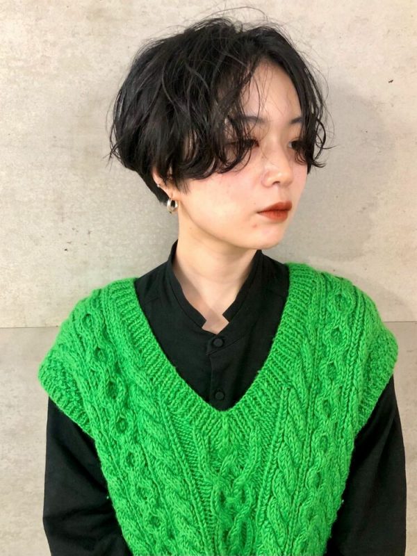 また、かっこいい印象が多い黒髪ショートでも丸みがあるシルエットのヘアスタイルにすることで、やわらかさも演出できます。