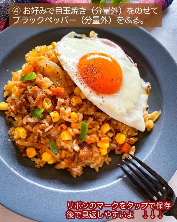 お好みで目玉焼き(分量外)をのせてブラックペッパー(分量外)をふる。