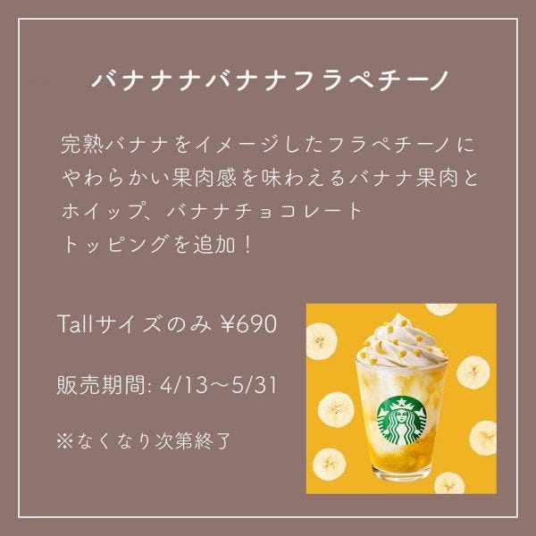 今回は「新作バナナナバナナフラペチーノ」をご紹介します。